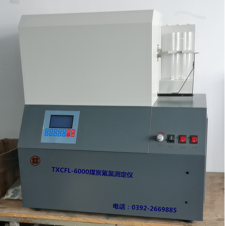 氟氯测定仪TXFL -2,煤样在氧气和水蒸气混合气流中燃烧和水解,煤中氟转化为挥发性氟化物并定量地溶于水中,以氟离子选择性电极为指示电极,饱和甘汞电极为参比电极,用标准加入法测定样品中氟离子浓度,计算出煤中总氟量