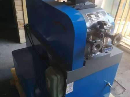 (5)间隙调节机构。该机构由手轮、调节螺栓、锁紧螺母及滑螺杆组成,装在主动轧辊轴承座底面导向键槽右部。旋动手轮可使主动轧辊沿导向键槽滑动,从而改变轧辊间间隙。