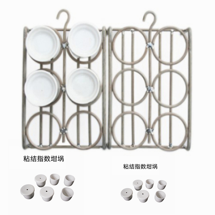 挥发份用坩埚,可耐热1200度左右使用。容量20ml,上部外径33mm、下部外径18mm、高40mm 挥发份坩埚架:由镍铬丝制成,标准6孔坩埚架尺寸:128×90×50mm 灰皿架(方舟架),镍铬丝制成,常用6孔尺寸:135×110×50mm 马弗炉灰皿:灰分用,化验室做灰分实验,上口开口尺寸长55mm,底面长45mm,宽22mm,高14mm 水分称量瓶:分析水用40×25的称量瓶,称取0.9-1.1g煤样;全水分用70×35的称量瓶,称取10-12g煤样